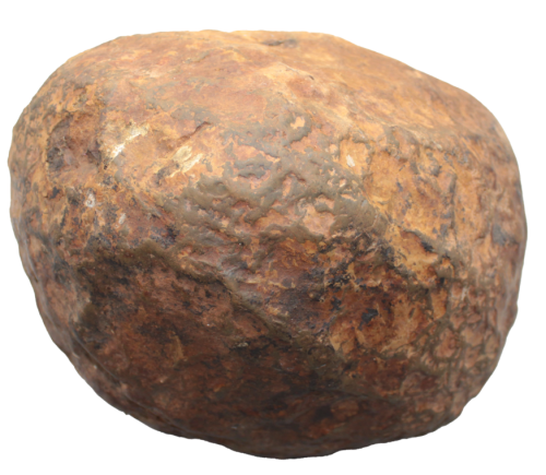 形态:呈不规则椭球状,边缘因大气层烧蚀而略显圆润,但仍保留了小行星碎片的原始棱角(如图中的凸起部分)。